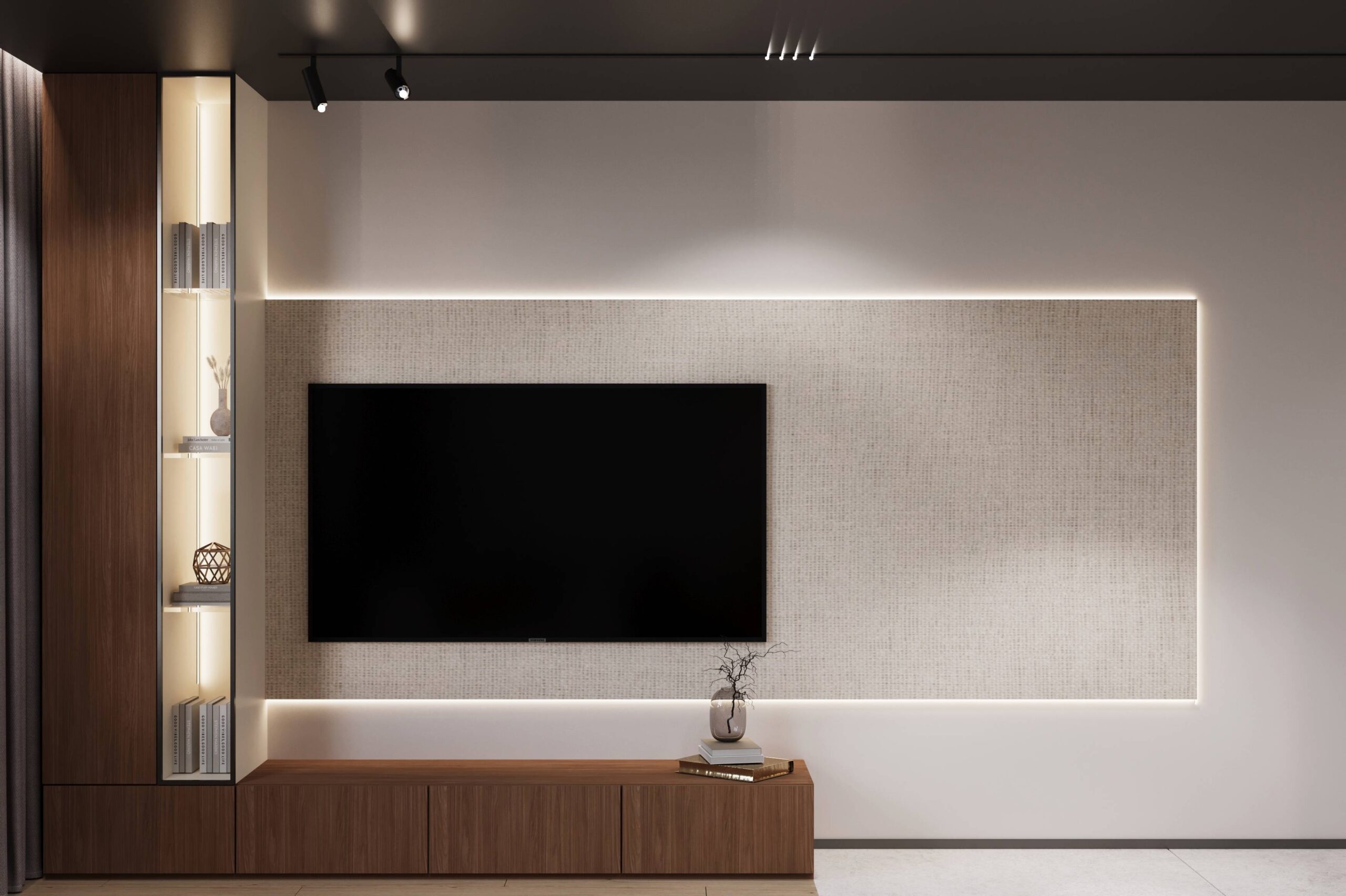 Kluczową rolę odgrywa oświetlenie. Starannie dobrane oprawy nie tylko doświetlają wnętrze, ale również budują jego klimat i stanowią element dekoracyjny. Całość tworzy nowoczesną, wyrazistą przestrzeń zaprojektowaną z myślą o komforcie i codziennym użytkowaniu.